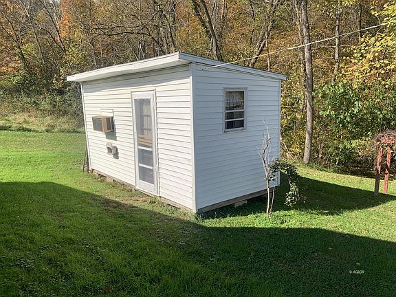 This 1998 Skyline Mobile Home is in great, move-in ready condition! The 3 bed 2 bath home features a nice covered 10x15 porch in the front as well as a nice shed (Grey and red) with two lofts, another shed (baby blue and white), workshop with electric (white vinyl building) and a water pump house beside electric pole. On a quiet road with additional acreage for sale separately across the road. Schedule your tour today!