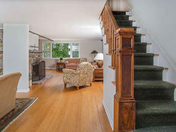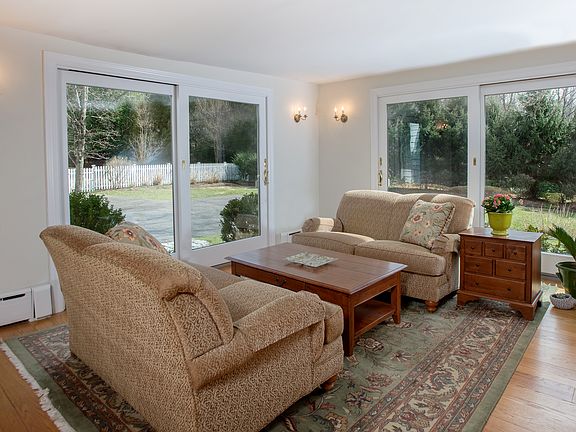 This light filled home is the one you have been waiting for - Set on a very private, beautifully planted with many perennials .76 acres, this home is awaiting its next owner. Gracious large rooms for entertaining, including the living room with a wonderful old stone fireplace and built ins and the extraordinary large family room with three sides of windows! Truly a house that brings the outside in! The kitchen has a large breakfast room and a sitting area for reading the morning paper. Upstairs there are 4 bedrooms, all with wood floors and a large balcony off of the master which overlooks the very private spacious yard. Close to train and town - easy for commuting. Don't miss it!