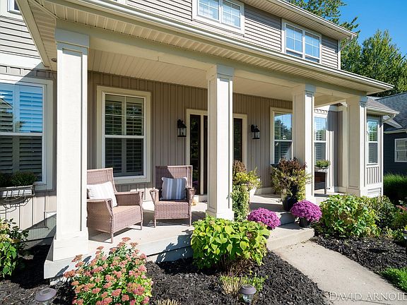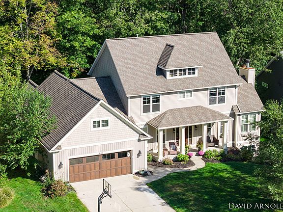 Just minutes from Lake Michigan beaches and downtown Holland, this spectacular 5-bedroom, 4.5-bath home in Pine Island sits on over a 1/2 acre lot. With two primary suites, it's perfectly designed for modern living and hosting guests. Inside, you'll find chestnut wood floors throughout much of the main level, and a chef's kitchen featuring custom cabinetry, granite countertops, and stainless steel appliances. The dining area opens to a screened porch and deck, ideal for indoor-outdoor entertaining. The primary suite boasts vaulted ceilings, his-and-hers closets, and a spa-like bath. Every bathroom is finished with ceramic tile for durability and style. The extra-deep stall garage (3 car) provides room for all the extras. Additional details like thoughtful storage, quality finishes, and timeless design make this home truly one-of-a-kind. Premier location in a neighborhood with custom homes. Enjoy lakeshore living at its finest!