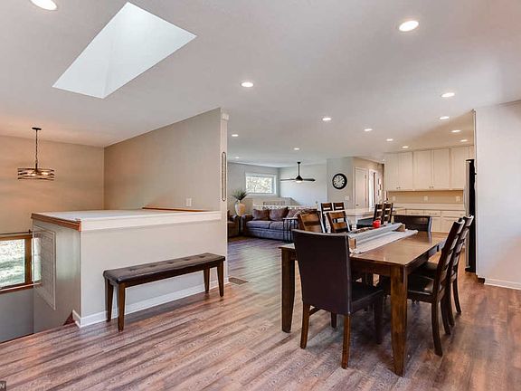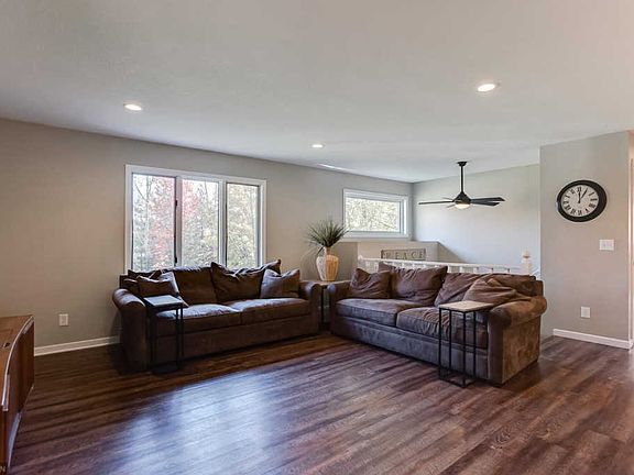 Rare 5+ Acre Wooded and Private Lot Setting with detached/heated pole-shed or shop (48ft x 31ft, concrete floor, drains, finished interior) and Remodeled-Updated Home. Gorgeous Main Level Kitchen Renovation included all new custom cabinets, new flooring, new countertops, new appliances, new fixtures & MORE! Fresh paint and other cosmetic updates. Wet-bar in LL. Primary Heat and A/C is forced air with supplemental baseboard electrical heat when/if ever needed. Heated floors in attached garage and back entryway. 2 staircases plus a separate staircase from LL into the garage. Massive, recently stained cedar deck. Endless trees and privacy....hurry, this one will NOT LAST!!