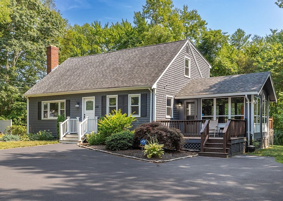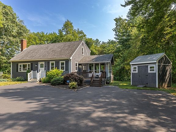 Nestled on over 2 acres, this charming Cape-style home offers a perfect blend of classic design and modern amenities. With 4 bedrooms and 2 full baths, including a convenient first-floor bedroom, this residence is ideal for versatile living. The inviting sunroom is perfect for enjoying year-round natural light, while the cozy fireplace in the living room provides warmth and ambiance. Modern comforts include central air conditioning and an irrigation system to maintain the lush, expansive grounds. This home combines comfort, style, and space in a serene setting.