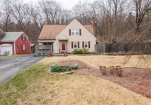 Well maintained 3 bedroom, 1.5 bath cape style home that has been in the same family for over 70 years! When you walk through the front door there is a large living room with hardwood flooring. This room opens up to the dining room and kitchen area. There is a gas stove which provides another heat source for the first floor. First floor also has a half bath, office and enclosed sun porch. The second floor has three large bedrooms and a full bathroom. The basement provides ample storage and laundry. Step outside and really enjoy the outdoors. There is a hot tub, 12'x12' deck and brick patio with built in grill and countertops. This property boasts over 3 acres of land surrounded by lots of trees and provides ample privacy. Easy access to highways, shopping, schools, and more! Well cared for home. Make an appointment today!