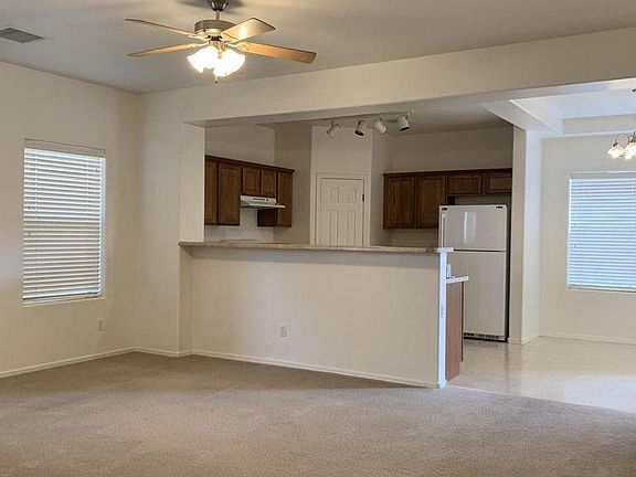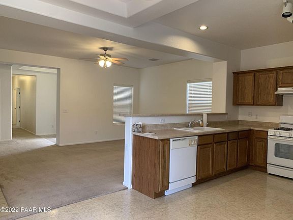 Ready to move into! 3 bedroom, 2 bath, split floor plan, spacious living area, open kitchen with dining area. Large laundry room with plenty of storage. Privacy fenced low maintenance backyard, covered patio and a 2 car garage! Near community amenities, about 14 minutes from Prescott Valley, shopping, restaurants and more... easy commute just under 2 hours to SkyHarbor Airport. Tenant pays all utilities. Owner pays community fees. This is a non smoking property, no exceptions. Tenant maintains backyard and responsible for pest control.