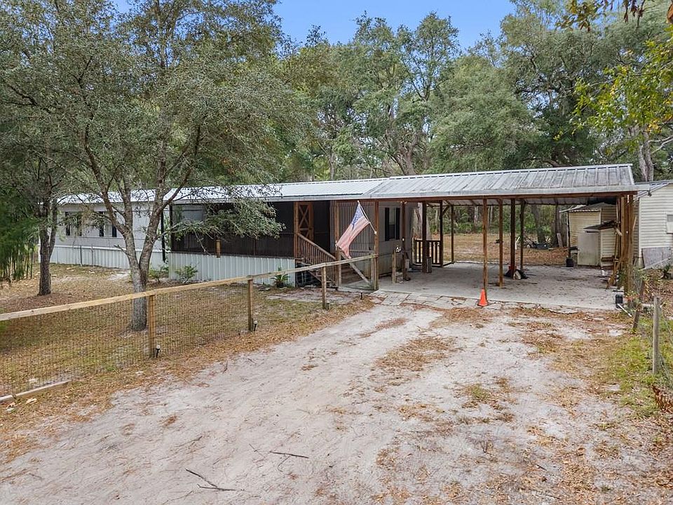 Affordable and move-in ready, this 2-bedroom, 2-bathroom mobile home sits on just under an acre in the heart of Old Town—offering comfort, privacy, and plenty of extras! The property is fully fenced and features two wells, making it ideal for those seeking a homestead, rental opportunity, or a peaceful full-time residence. Step inside to find upgraded flooring throughout, creating a clean and updated feel. The split-floor plan offers a spacious master suite with a large walk-in shower, oversized vanity, and easy access to one of the home's three energy-efficient mini-splits. The guest room and second bath are perfectly situated for family or visitors. Enjoy Florida living year-round on the screened front and back porches, perfect for relaxing with your morning coffee or winding down in the evening. Outside, you'll appreciate the two-car carport, multiple storage sheds, and plenty of room for your vehicles, tools, and toys. A 4-year-old roof adds peace of mind, and fiber-optic internet ensures fast, reliable connectivity for work or streaming. Located just minutes to the Suwannee River, local conveniences, and a short drive to Cross City or Chiefland, this property offers a great blend of comfort and convenience. Don't miss your chance to own a well-maintained home with all the essentials already in place!