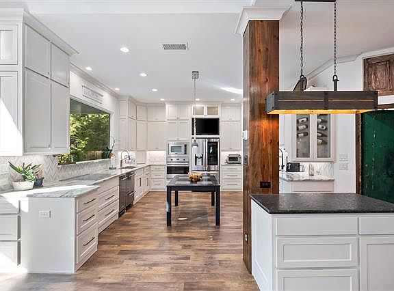 WHEN QUALITY COUNTS, you can count on this stunning CUSTOM BEAUTY to be the one!! This multi-generational home is situated on 5+ acres, with a private pond. A canopy of trees provides tranquil seclusion. The Chapel ceiling in the den will capture your heart. It offers a full wall of windows overlooking the wooded backyard, screened in porch and pond. The Chef-inspired kitchen features magnificent marble countertops, instant hot water, plenty of cabinets & counter space, as well as an oversized walk in pantry. The owner's retreat offers oversized windows that allow natural light, 17' ceilings with wood beams, separate bathrooms and an enormous custom walk in closet. Love your pets? Then you will love the ultimate pet room with a private exterior door that leads to a fenced in dog run. Guest Quarters are part of this home and offer separate entrance, screened in porch, well equipped kitchen and it's own laundry area.