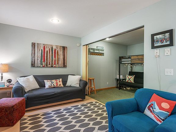 Of all the affordable condos at Schweitzer, this Black Bear Studio has the closest ski access and the best common areas, including a recreation room, large laundry room, guest bathrooms and a bright ski tuning area. This furnished condo is perfect as an investment or for your own use. The living areas are open and nicely appointed. The bedroom area has a slider screen for privacy and a large closet. The kitchen has ample storage and a small dining area. You also have a large private locker room on the lower level. The Black Bear is located next to The St. Bernard. You're just 30 seconds away from a great burger or trivia night! Catch the free shuttle bus to the village or it’s just a minute to the Overnighter Ski Trail.