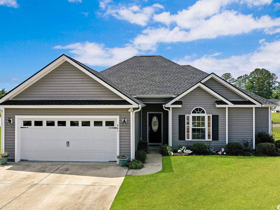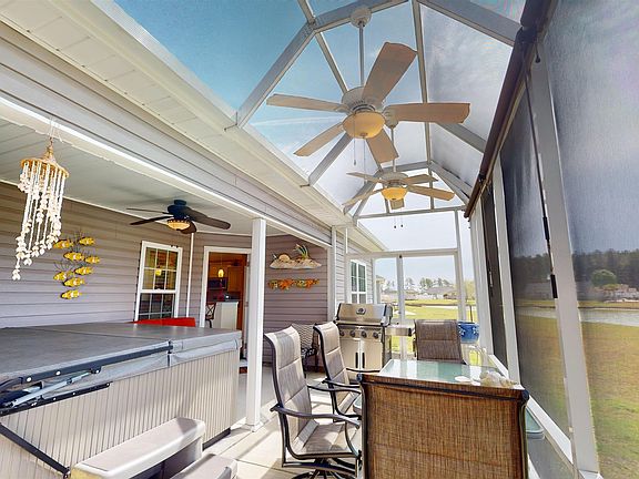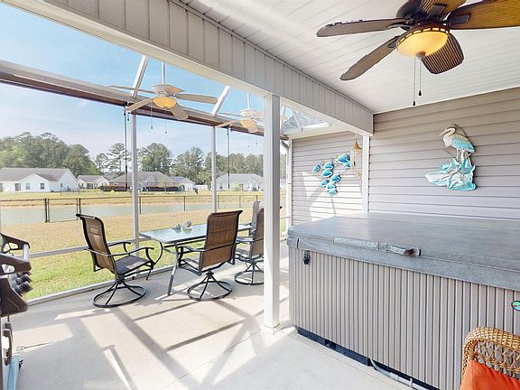 Presenting this graceful 3 bedroom 2 bath lakefront home situated in the popular Hampton Place community. This exquisite home has wood look LVP, tile, & carpet flooring, 10 foot ceilings, and a spacious living room. The family-friendly kitchen is equipped with a stainless steel appliances package, granite countertops, breakfast bar, cabinets topped with crown moulding, a practical kitchen pantry, a dining area, and showcases access to the delightful screen-in lanai with a relaxing hot tub along with tranquil lake views. The master bedroom also features peaceful lake views, vaulted ceiling with fan, private access to the master bath that offers a vanity with dual sinks, a water closet, a garden tub, a deluxe step-in shower, and his & her closets. This stylish home is completed with two additional bedroom rooms, full guest bath, laundry room, fenced-in back yard, and a two car attached garage. This home affords you easy access to the beach and golfing along with all of the other activities and happenings in Myrtle Beach & Conway including fun eateries, award winning off-Broadway shows, public fishing piers, Conway’s historic riverwalk, and intriguing shopping adventures along the Grand Strand. Conveniently located to your everyday needs, including grocery stores, banks, post offices, medical centers, doctors’ offices, and pharmacies. Check out our state of the art 3-D Virtual Tour.