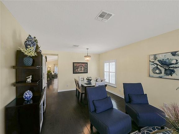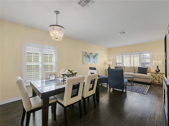 Pride of ownership is evident in every aspect of this Davenport/Champions Gate home. Endless possibilities with two master bedrooms, one downstairs and the other located upstairs which offers a separate sitting room off the bedroom. The perfect space to be an in-law suite, playroom or a large private office. Additional flex space conveniently located off the kitchen area makes for the ideal library, office or den area. The classic finishes, open floor plan and vaulted ceilings give this home a spacious and bright feel. Beautiful enhancements were added after the owners moved in which includes hardwood flooring and stately plantation shutters throughout. Additionally, the covered lanai was upgraded with tile flooring and enclosed screening making your outside living space more inviting. Lastly, a privacy fence with gate access was installed giving the backyard area the privacy it deserves. Prime location just minutes from I-4 for a quick trip to all the Orlando theme parks, Champions Gate, Northeast Regional Park, beaches, shopping, dining and so much more. The community offers a lovely pool and playground area. Low HOA fees and no CDD.