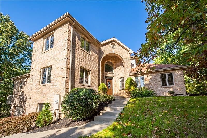 Custom built brick home perched on 10-plus acres! Let Mother Nature do the decorating and enjoy a private estate with wooded views from every window, yet super close to I79, Rt19, Zeli and Cranberry. Offering a unique floor plan with tons of architectural details to swoon over - starting with a 2-story entry and staircase. Upper level holds a master suite with HUGE walk-in closet and updated maters bathroom with large walk-in shower and guest bedroom with ensuite. Bedrooms 3 and 4 conveniently located on the main level and share a jack n' jill bath. Study, hearth room, great room with soaring ceilings that opens dining room with wet bar, and beautiful upgraded kitchen and laundry room round out the main level. Walk-out Lower level features spacious entertaining area with a wet bar, full bathroom, large storage room and access to the garage and yard. New hardware, carpet throughout and entire home freshly painted. Level Flat back yard with a huge wrapped around deck.