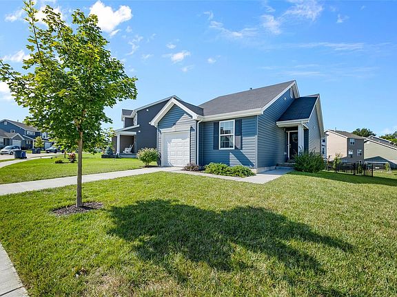 This charming home, built in 2021, seamlessly blends modern elegance with cozy comfort. The open floor plan showcases a spacious living area with vaulted ceilings that flow gracefully into a sleek kitchen featuring stainless steel appliances and a stylish breakfast bar. The tranquil primary bedroom offers dual closets and a luxurious en-suite bathroom. Benefit from the convenience of main-floor laundry and the exciting potential of a generous unfinished basement, which includes an egress window and rough-in plumbing for a future bathroom. Additional features include an attached one-car garage and a beautifully fenced backyard with a concrete patio, perfect for entertaining and relaxation.