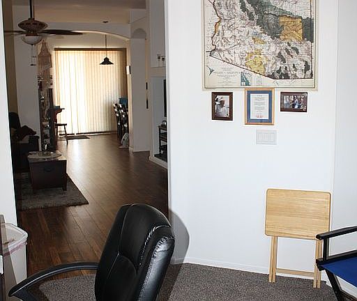 This Charming, extremely clean, two bedroom, two bath, with den has been well cared for and is ready for anyone yearnin' to live in Camp Verde's finest neighborhood...THE VERDE VIEWS. Home has been decorated in Vintage Western Theme. Upgrades include outdoor wall lamps and indoor hanging light fixtures with rustic bronze or hand-hammered copper lights and New Hunter ceiling fans. A glass front fireplace, in the living room, enhance the decor. while taking the chill off a winter morning. Den provides for an office with a view. Vintage Timber laminate and Shaw multi-tone carpet have been installed throughout the home adding to the classic ranch-look. The master and guest bath have new upgraded Vortens toilets. The tubs have been renewed with a couple of R.O.G. 1 & 3 treatments. (more)