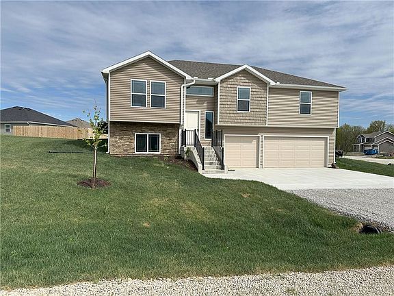 This beautiful new construction home right outside Whiteman AFB and the city of Warrensburg will be perfect for your family. This split-entry home has 2 bedrooms and master bed/bath on the main level. The master bedroom features a tile shower with skylight, whirlpool tub, and spacious walk-in closet. The kitchen is on the main floor equipped with all stainless steel appliances and tasteful granite countertops. The bedrooms are carpeted along with luxury vinyl plank throughout the kitchen, halls, and bathrooms. This home also features a second living area in the lower level with a fireplace, along with another full bedroom and bath. Oh and don't forget the extra deep 3 car garage perfect for extra storage or a shop. You will love this home at Meadow Creek!