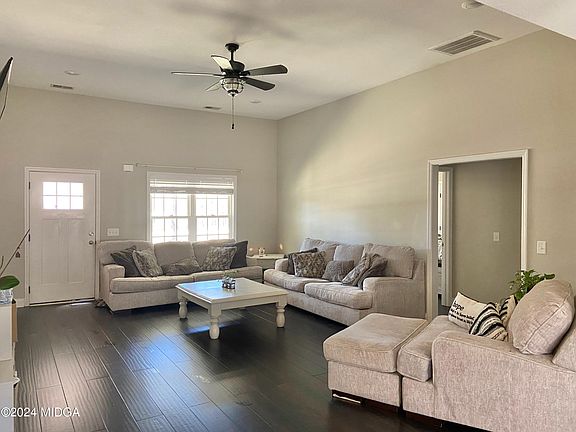 Almost new home on 2 acres with 4 bedrooms and 2 baths! Take a scenic ride through the pecan orchards and peach orchards on Highway 42 to view this excellent condition, move-in ready home with engineered wood floors throughout, granite countertops, island in kitchen for extra counter space and tray and vaulted ceilings, and real 2 car garage with entry door AND garage door. Additional features we loved about this home are the laundry in mud room with HUGE pantry, big rocking chair front porch, and room for a shop on the spacious 2 acres.