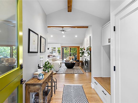 Ideally situated on one of the best streets in Laguna Village, 461 Shadow Lane delivers comfort, style, luxury and simplicity. Contemporary Craftsman Bungalow Style Architecture with modern functionality. The 1950s single-story house has been meticulously renovated and expanded by designer James Henry and cared for by the same owners for the past three decades. Large private backyard oasis backs to canyon bordering Wood’s Cove. This lot is over 7100 sqft of prime property in the heart of Laguna Beach. An abundance of natural light fills the house and captivates you the moment you walk in the modern dutch door. The sunny open concept kitchen looks to majestic treetop views over the canyon below and a sumptuous private entertaining back yard. Gourmet kitchen with custom crafted cabinets, five burner Thermador stove and dishwasher, wheat quartzite kitchen counters, glass tile backsplash and breakfast bar. Open concept living with large windows and sliding doors which lead to an Al Fresco covered outdoor dining area. Stylish designer fixtures and lighting, gas/wood burning honed Blue Nova stone fireplace, oak hardwood flooring throughout. Attention to detail in all the 3 thoughtfully designed bedrooms and 3 spectacular baths. Ensuite primary bedroom with large San Mateo limestone walk-in shower with Golden Pebble floor, quartzite countertops and double sinks. Large soaking tub in 2nd ensuite bedroom. Bonus flex room attached to the garage lends itself to becoming a private work at home space, (this is additional living square footage to what is listed), with private deck that looks to the canyon. This is space is an outstanding ADU opportunity. The home has a large cozy outdoor fireplace with 4 porch and patio areas in the tranquil back yard all with meandering garden views. Central A/C, tankless water heater, designated laundry room, whole house fire sprinklers, 1 car garage and large driveway for 3+ cars for ample parking. Great location, walking distance to dining, beaches, Bluebird Park and all that Laguna Beach has to offer.