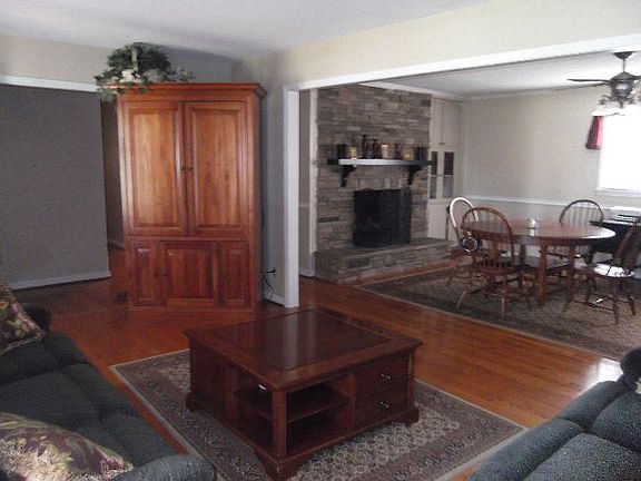 Very open floor plan. Lots of storage. Two Fireplaces. Family Room in basement with fireplace and double windows. Lots of shelving in basement and two work benches. Wood Stove in basement. Garage underneath with automatic garage opener. Large rear deck with concrete patio underneath. Large storage building with electricity and automatic garage opener.Vinyl siding. Deep lot with nice place for a garden. Lots of mature shrubs. Double Driveway. Wide curbed streets and convenient to by-pass, schools, grocery, and restaurants. Square footage per tax card. Owner Agent.