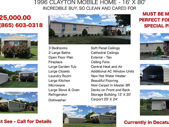 This 1200 square foot mobile / manufactured home has 3 bedrooms and 2.0 bathrooms. This home is located at 461 State Highway 30 W, Decatur, TN 37322.
