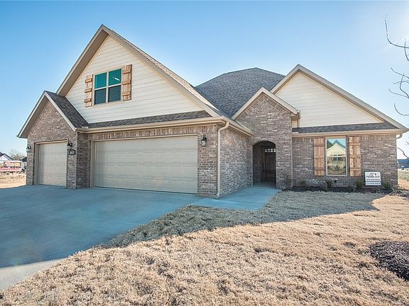 Wide open floor plan makes great entertaining space inside & out. This 4 BR 3-1/2 BA home w/ 3-car garage is located in a great new neighborhood zoned for Har-Ber High. Kitchen w/ upgraded appliances, island & pantry. Master w/ loads of light, huge closet, bath w/ dual vanities. Laundry accessible from mud room & master closet. Two additional BRs on main level. Bonus or 4th BR upstairs w/ full bath. Covered back patio wired for TV. Pool and clubhouse Spring 2018. Close to schools, shopping & dining.