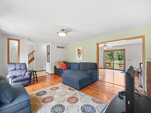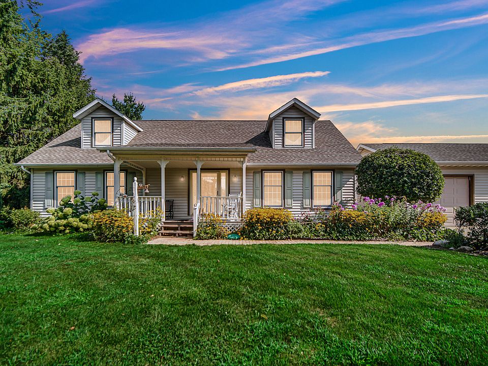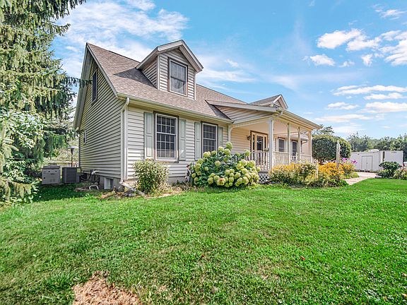 If you're looking for seclusion yet still just minutes from a bustling town, then look no further! It's your time to own a little piece of paradise! Tucked far off the road you will find a beautiful home sitting on 5 quaint acres. This Cape Cod features 4 Bedrooms, 4 Baths, a Finished Basement, and is an Equestrians dream. Huge front yard boasting with fruit trees, 3 Outbuildings in total, a Pond, Above Ground Pool and Large rear deck, AND all the nature one could want. There is a 30 x 24 Stick-built Detached Garage equipped with concrete floors and electric near the home to house all your vehicles. Secondly, you will find another Outbuilding / Pole barn measuring 28 x 24 with concrete and electric for your storage and toys. Lastly is the cream of the crop featuring a 32 x 24 Horse barn with tack area, hay loft, 2 stalls, all leading out to a fenced in area with an additional animal shelter. PLUS - Don't forget the chickens! There is a nice coop tucked away as well giving you an entire working FARM! With perennials galore, and a home that has been tastefully updated with new custom kitchen cabinetry, quartz countertops, hardwood flooring, main floor Primary bedroom with renovated bath, walk-in closet, and main floor laundry and half bath for guests.. There are additional hook-ups in the basement where you will find a 4th Bedroom including Egress, Full Bathroom, Rec Area, Utility Room, and additional storage. The Upper level contains 2 more Bedrooms and another Bath. This home is truly the whole package and is would make it prefect for related living. Roof was replace approximately 3 years ago, there are 2 wells on the property, and enough space for the whole crowd! Homes with this many amenities don't come on market often, so be sure to get your showings scheduled soon!