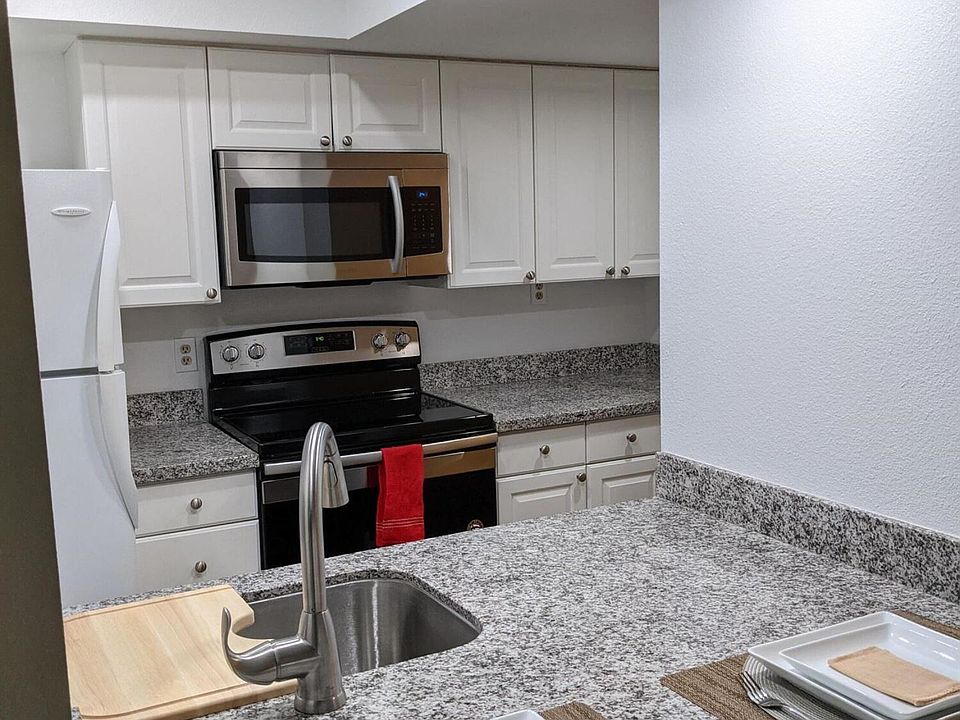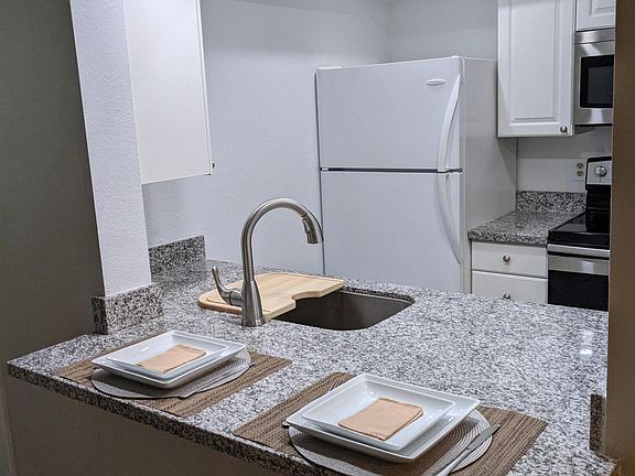 Great remodel!! 2 bedroom/ 2 bath end unit condo with NEW flooring, paint, granite countertops, low e-windows, blinds, washer/dryer, kitchen appliances and much more! Not to mention the vaulted ceiling and large closets! Water/sewer/trash is included! Gated community boasts multiple pools (the closest is steps away and is heated), tennis courts and racquetball courts. Sorry no pets and no smoking. Come see it before it is gone!