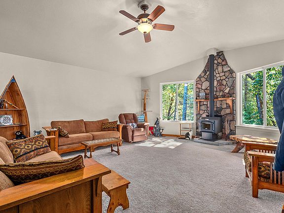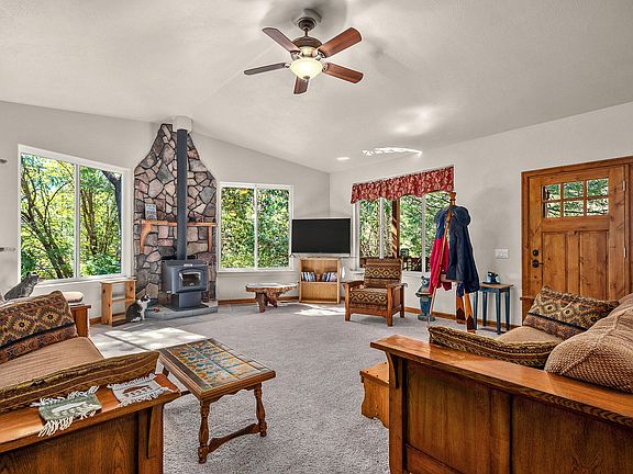 Privacy & serenity live here! This elegant country home offers 1901sf of light & bright living space on a peaceful 5.53 acre lot that you'll enjoy for years to come! As you enter this home you'll find an open living room w/ vaulted ceiling, cozy wood stove & large windows that take in the views of the forest. You'll love the well-appointed kitchen featuring custom cabinetry, large pantry & breakfast nook perfect for a relaxing morning coffee. Comfortable floorplan includes a large primary suite complete w/ gorgeous picture windows & an ensuite bath plus a spacious guest room complete w/ a jack n jill ensuite bath & doors to a large deck overlooking the forest. Additional features include a bonus room perfect as an office or craft room, a massive mud/laundry room w/ a sink & loads of cabinet space plus an oversized attached 2 car garage w/ large workspace for all your hobbies! Outside you'll also find a large woodshed, security gate & a yearly creek. Call today before it's too late!