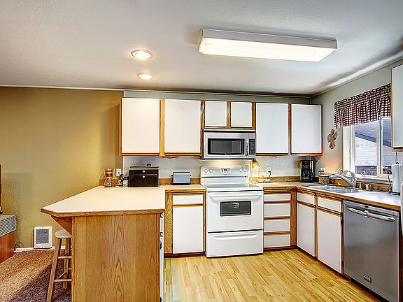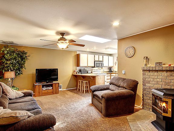 Inviting & comfortable rambler on cul-de-sac. Covered front porch, painted shutters and hand painted wood siding. Wood floor entry, new carpet thru-out, skylights, ceiling fans, formal living & dining rooms, family room w/pellet stove, kitchen opens to family room with white cabinets & eating bar, new stainless steel appliances, large master suite w/bath, and a fully fenced backyard with dog run/kennel. A great home at a great price located in the heart of Silver Lake!