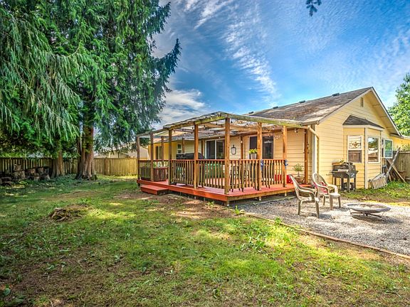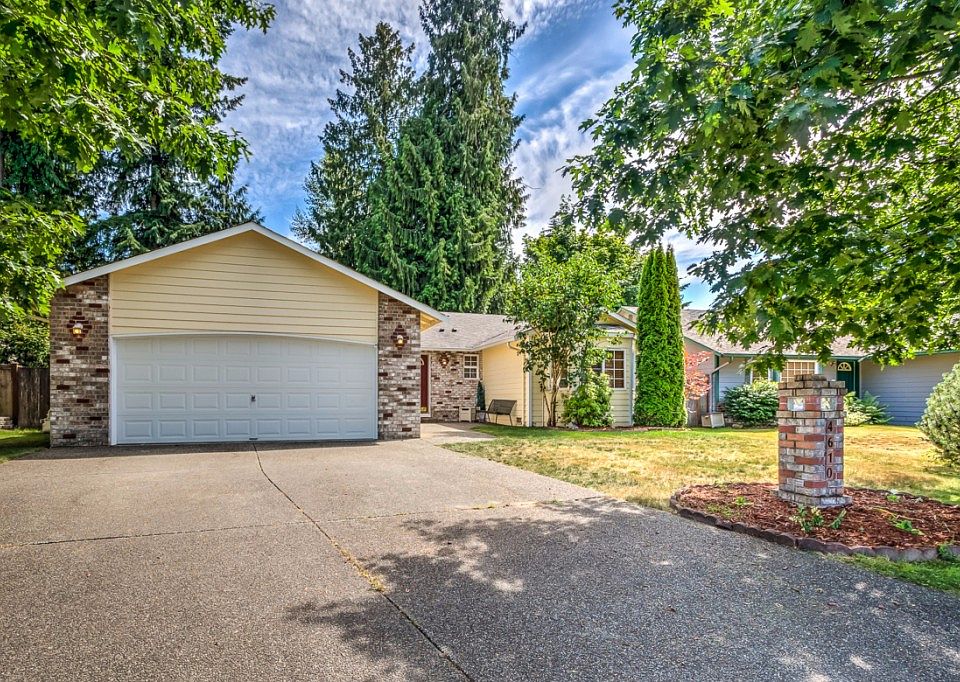 his Open Bright Cute Rambler! Vaulted ceilings with incredible amount of natural sunlight. Cozy gas fire place. 3 bathroom, 2 full bath. Kitchen has lots of storage in cabinets glass slider opens to huge back deck for entertaining and fully fenced back yard. Attached 2 car garage. Inviting front yard in a peaceful neighborhood. Huge trees in back yard provide great privacy and shade along with large covered deck.