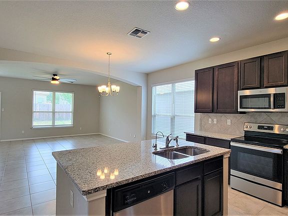 Stunning 4 bedrooms, 2.5 baths, and 2-car garage home! The first floor offers the perfect space for entertaining with a bar top kitchen open to the family room. Retreat to the first-floor Owner's Suite featuring double vanity, separate tub and shower, and spacious walk-in closet! Secondary bedrooms have walk-in closets, too! Enjoy the great outdoors with a covered patio. Bonus room downstairs can be used as an office!! This home is also equipped with water softener and reverse osmosis water filtration at kitchen sink. Also includes washer/dryer! Conveniently located near IH-10, Loop 410, Loop 1604, Randolph AFB, Ft. Sam, and more!