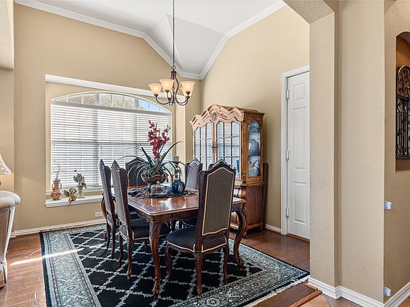 Stone fireplaceHigh ceilingsExpansive windowsCovered patioPrivate and spacious backyardMature shade treesBright open feel