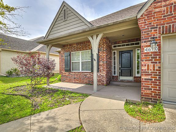 Single story home in Falcon Ridge Estates - Bixby Schools 3 BD/2 BA/2 CAR GR/1 Open concept split floor plan with fireplace in the living room. Kitchen has a large eat-in bar & island, granite counters, staggered cabinetry & pantry, corner cabinets with glass. Primary bedroom features a walk-in closet, private master bath w/ double sinks, lots of storage, separate shower & a jetted tub. Large front interior entry. Covered front porch & covered back patio w/privacy fence. Neighborhood amenities include pool