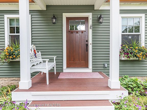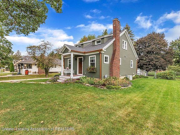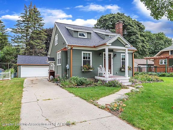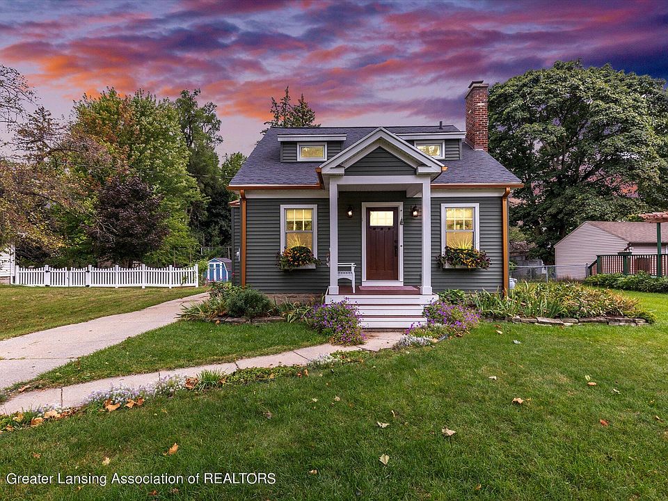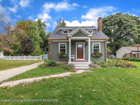 Perfect curb appeal on this one. This gem has had the same owner for many years and the pride of ownership shows. From the charming window boxes and covered porch to the rich green siding enhanced by a beautiful design feature of copper gutters and downspouts. This home has been well cared for and maintained and it shows. Tucked in a quiet neighborhood in Delta Township with a very generous fenced yard and a 2 car detached garage with ample power for all your hobbies. The home has a customcherry kitchen, updated bath & newer windows. It's a definite must see. Seller reserves the Sauna & extra stove in the basement. All other appliances stay.