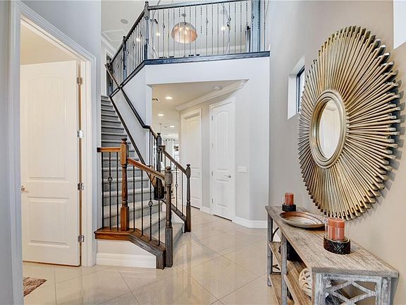 Immaculately maintained 4 BR/2.5Bth/2 car garage pool home w bonus study/office is located on a premium corner lot w panoramic water views. The gourmet kitchen features custom white cabinetry, high-end appliances & a large center island/ breakfast bar. The spacious family room offers 2 sets of sliding doors that open up to the patio area which features a heated pool/hot tub w waterfall & plenty of room for entertaining/ outdoor dining. The second floor master suite offers large his and hers closets & a spa like en-suite bathroom w double sinks. This former model home also includes smart home capabilities & integrated vacuum systems throughout. The community offers a resort-style pool, lap pool, basketball & tennis courts, fitness center, tot lot, gathering area w kitchen/ fire pit & more. This home is located in an A-rated school district, providing excellent education opportunities. Proof of funds or pre-approval necessary for all offers.