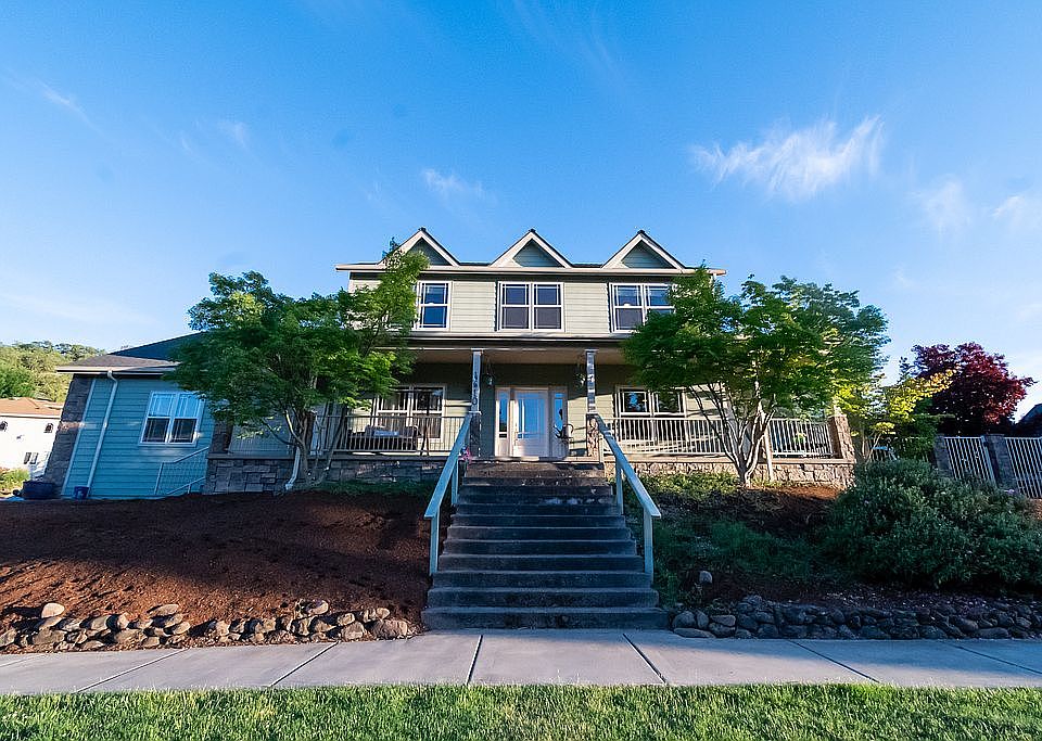 Custom home built in 2003 with large vaulted ceilings and views all around. This home has 4 bedrooms and 3.5 baths with an office and bonus room loft. The master suite and office are on the main floor with 3 bed rooms and 2 full baths upstairs as well as the loft space. There is a 3 car garage with custom cabinets and work bench. Central vacuum system. Large picture windows. Great size kitchen with granite counters, newer stainless steel appliances and double door pantry. Enjoy lots of entertaining in the back yard with the inground pool that has views of Roxy Ann Peak and also a bucket garden that has over 40 plants growing. Low maintenance yard with wrap around porch to enjoy the sunsets and views of the hills.