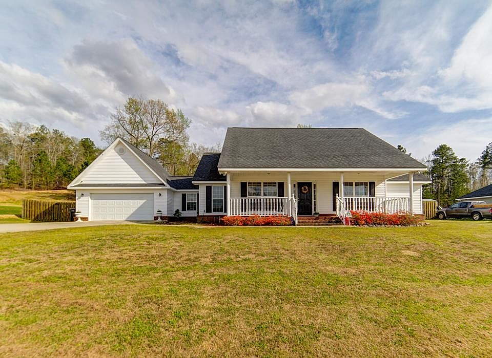 #PARADISEinHEPHZIBAHGA : Looking for a peaceful country setting on acreage with a POOL? Rocking Chair Front Porch and covered rear patio (26X11) with cable TV overlooking crystal clear in ground pool. As you enter the great room your eyes are drawn to the vaulted ceilings in great-room which leads into over sized eat in kitchen with Stainless appliance package and rich stain wood cabinets. Trey ceilings in master bedroom with private entry to covered rear patio master bath offers his and her dual vanity sink separate stand-up shower and garden tub. Bonus ALL bedrooms feature deep walk-in closets.