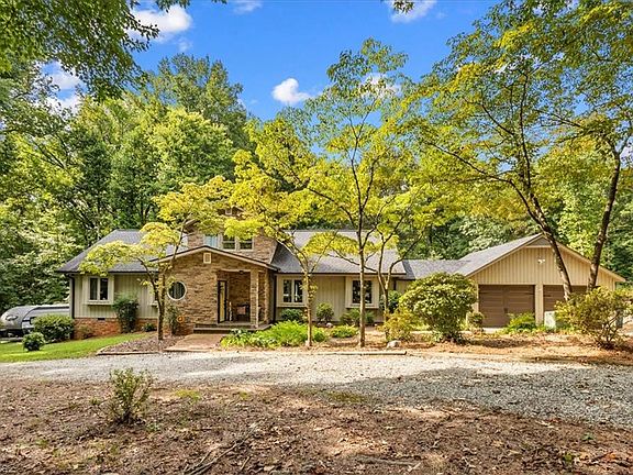 Beautifully updated Contemporary style meets Cabin nestled in Summerfield w/county taxes, mins to GSO, shopping, restaurants, hwys, lakes, parks, Greenway on private 3+ acres, circular driveway along w/a double paved driveway to the double garage. 2784 sq ft, vaulted entry w/beautiful hardwoods & neutral paint (no carpet), vaulted ceiling! Formal Dining Room, perfect for Entertaining opens to a Vaulted 2 story Fireside Great Room filled with natural light and view of cat walk above! Beautifully updated eat in Kitchen with recent cabinets, tile backsplash, solid surface counters, island! Den/playroom/bonus. Main level Primary Suite w/WI closet, En Suite tiled bath & oversized WI shower. 2 addtl. beds & updated tiled bath (1 w/o closet). 2 beds + office up share updated tiled bath. Exterior deck, perfect for BBQ's, level 3+ acres w/wooded trails perfect for walking, dirt bikes, 4 wheelers! Video: https://yourangmediallc.hd.pics/media/download.asp?540ADF5BD6EB45FAA597F0C40B9B160F
