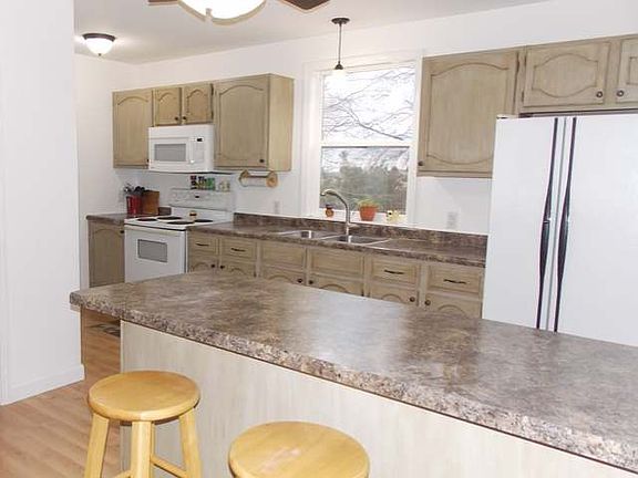 2.8 acres Zoned for horses close to city limits. 4 bedrooms, 2 bathrooms, attached garage, new furnace and Ac unit, siding, shingles, windows, doors, facia, gutters have recently been replaced. Newer kitchen cabinets, counter tops, sink and faucets. Kitchen offers counter for stools along with a separate living room and dining room with patio door to the deck. Main level bedroom, two bedrooms upstairs, walkout basement with well insulated walls and two large windows, 4th bedroom with nonconforming window, laundry room and a spacious family room with wood burning stove.