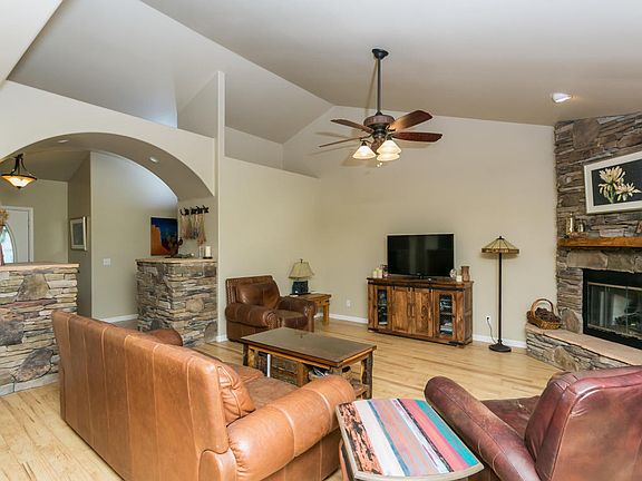 Searching for your Green Belt Paradise? Look no further. This beautiful custom built home sits on 1.63 irrigated acres from the OK Ditch. Fully fenced with solar remote gate, enjoy space, mature trees and mountain views. Many fruit trees on the property including space for a raised garden. This unique location features a special river access and park only for this neighborhood. The home has been meticulously maintained and cared for with upgraded GE Profile appliances, freshly painted thru out the interior. If you have toys, there is plenty of room. The detached garage workshop is 880sqft with a full loft, bathroom and water heater. 220 service & ready for your project. The open great room has a custom stone heart around a gas fireplace with french doors to the back patio & views of Mingus