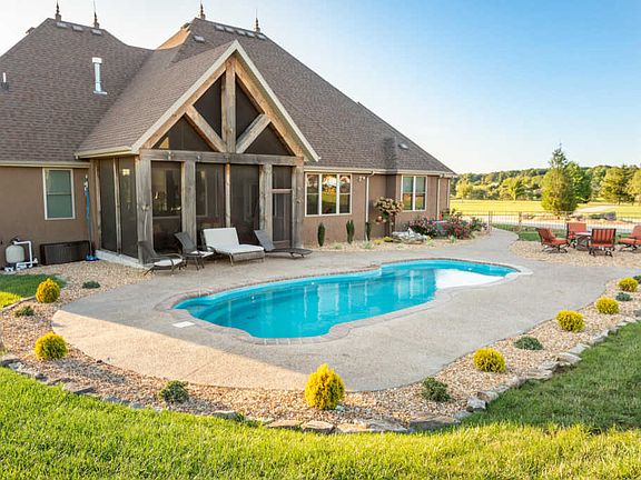 This beautiful custom built home greets you with a paved, gated entry, mature landscaping and grand front doors. As you walk into the open floor plan home, your eyes will be drawn to the large windows that provide a stunning view to a screened porch, salt water pool and fire pit area. The rich color palette from floors, cabinetry, and paint provide a comfortable, yet elegant backdrop. The main level features the master bedroom with a double sided fireplace, spa like bathroom, and spacious closet. As well as a second bedroom with an en suite bathroom and closet. The full finished basement features a safe room, theatre room. large bonus area, extra bedrooms, bathroom, and storage space galore. Beyond the pool in the back there is building that is perfect for basketball fans! Custom designed