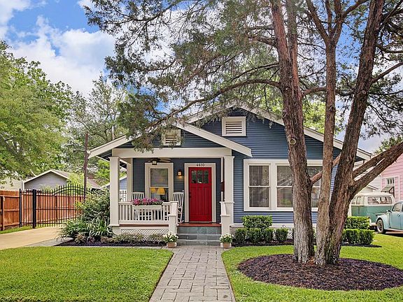This thoughtfully updated 3/2 bungalow sits on a quiet, 1 block section of Oak Ridge, and is absolutely adorable! Lots of updates in the past 5 years. Combo living/dining space with brick surround fireplace. Kitchen has newer stainless appliances + the washer/dryer. A spacious master bedroom at the back of the home includes a fabulous walk-in closet (so unusual), French doors to the back yard and a lovely bath with shower/tub combo. A large guest BR sits at the front of house, and the 3rd BR is perfect for an office or nursery. This home has a roomy 2nd bath, above average storage, gated driveway, private back yard and a 2 car garage! No Harvey flooding.