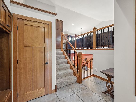 Don't miss this stunning home with custom craftsmanship & high-end finishes throughout. A spacious foyer with custom built-in lockers & gorgeous cherry woodwork and black iron balusters will welcome you. The open-concept main level features a kitchen with custom cabinetry, stainless steel appliances, granite countertops, access to the deck & a center island that overlooks the living room with vaulted ceilings, hardwood floors, fresh paint & a fireplace. Highlights of the large primary bedroom are the custom built-in closet system & a private bathroom with a stone backsplash wall & built-in cabinet. Work from home? The second bedroom offers the perfect spot with a built-in desk, shelves & a high-top desk. The finished basement features 2 more sizeable bedrooms, a bathroom with granite countertops & a stone tiled wall & a large family room with gas fireplace with stone surround & custom built-in media cabinet. Close to Tom Ryan Park & the Ponds Sports Complex!