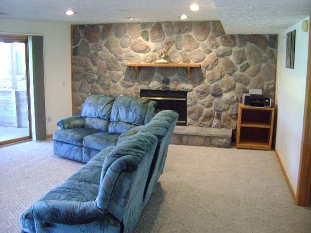 IMMACULATE and BEAUTIFUL WATERFRONT HOME inside and out! Complete ROOF REPLACED on 11-11-10. 2326 total sqft of living space that gives you plenty of room for entertaining. Upper level overlooks professional wooded and stone landscaping on 122ft of Lake Lancelot with mature Blue Spruces and shade trees. 16x16 deck with steps and electric at waterfront. Low, shallow sandy shoreline. Upper level has a spacious great room with knotty pine ceiling, marble gas log fireplace, 2 doorwalls, master bedroom, full bath, large kitchen with oak cabinets, & long serving counter. Lower level walk-out has beautiful stone wall gas log fireplace, large family room, two bedrooms, full bath and wet bar. Home has 2-car attached garage that is insulated and drywalled. Directly at back of garage is 9x14 mud room with 1/2 bath which can be accessed from lake side. This 3 BR, 2BA home has many custom features including 4ft wide halls & 6 inch exterior walls for better heating/cooling. Reduced to $264,900!