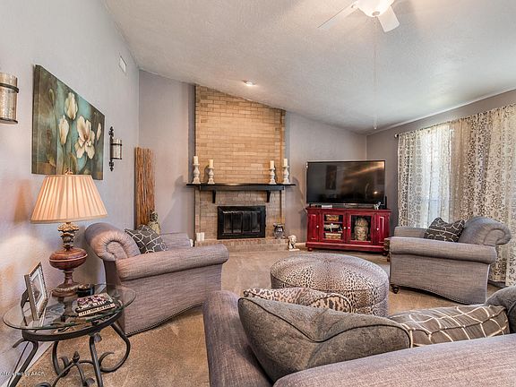 Check out this beautifully updated home with Mid Century Modern appeal. Home features a large open concept Living Room, Dining Room and Kitchen. Large Living Room has a wood burning fireplace, updated paint colors and newer carpet. Kitchen has lots of cabinet and counter space with a bar and a pass through window to backyard. Large Isolated Master Bedroom with 2 closets, updated Master Bath and a side Patio. 3 sheds in large backyard with separated fencing and a large gate for you to park your RV or other toys. Newer carpet, tile and paint throughout and no popcorn ceilings! Easy access to I-27. Frontage road in front of house provides more parking and quiets traffic noise. Call for a showing today!