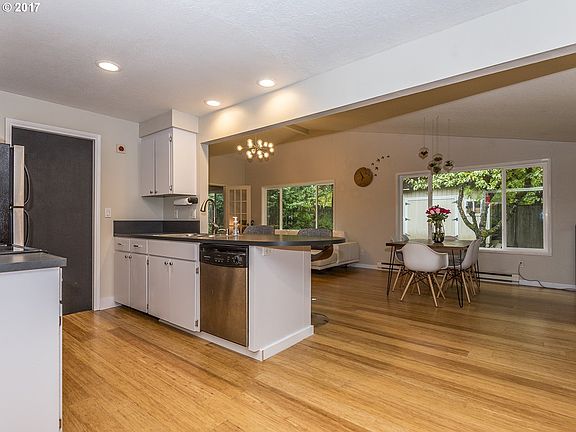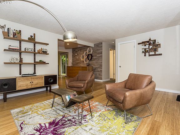 Open SUN 1-4. Popular Bridlemile neighborhood w/exceptional schools! Updated kitchen opens to vaulted family room with large windows. Mid-century vibe w/updates by owner who is a custom furniture maker. Wood burning fireplace for chilly nights. New roof, windows, beautiful strand bamboo flooring. New composite deck, good sized fenced yard, dog run. Walk to park, Don Pedro, Dutch Bros, Clubhouse Bar & Grill, Portland Athletic Club