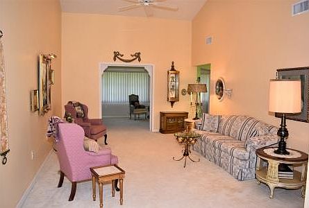 This home is new on the market & won't last long! Being sold partially furnished! This 3 Bdrm, 2 Bath home has an open floor plan with cathedral ceilings in the Living & Dining Room + split bedroom floor plan. This home has been well maintained inside & out. The kitchen features oak cabinets w/ solid surface counter tops & breakfast nook area. The master suite is quite large w/ oversized walk-in closet + master bath has double sink vanity with oak cabinets, corner tub & separate shower. Both guest bedrooms have nice amount of closet space & the guest bath has a tub/shower combination with single sink vanity & skylite. The 3rd bedroom is used as an office. You will enjoy the nice family room & the rear screened porch with hook up for t.v. in both areas. The oversized garage has plenty of storage & a wash-tub sink too. All items included except card table, porch furniture & tv & tv stand in the family room.