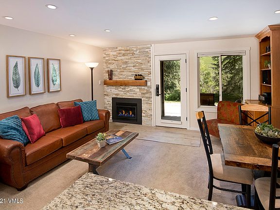 Perched along the banks of Gore Creek, this Vail Racquet Club 1 bedroom residence enjoys 1.5 baths and has been fully renovated throughout. A new gas fireplace with stone surround was just completed; the kitchen and baths have slab granite surfaces and stone tile, updated overhead ceiling lighting, new carpet, and stainless steel appliances. This residence also features an additional exterior storage closet in addition to the ski locker. Vail Racquet Club is ideal for those seeking low maintenance resort living complete with well equipped fitness center, tennis courts, year round outdoor pool, hot tubs, bike storage and more!