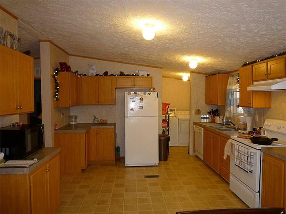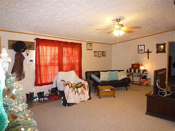 Country location approx. 1 mile from paved road and less than 5 miles from Wal-Mart. Fully fenced 5 ac, stocked pond shared with neighbor. 3 storage buildings, artesian well and city water. Open floor plan has split bedrooms, roomy kitchen with lots of cabinets. Garden tub and shower stall in master bath. New carpet in living room and master bedroom. Some pasture area for animals and enough wooded area to give a feeling of privacy. Taxes estimated, current owner tax exempt. Propane tank does not convey.