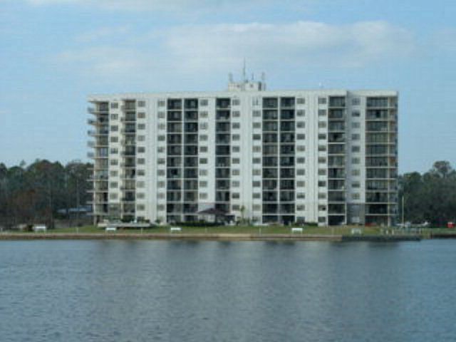 Enjoy the magnificent view of Terry Cove, Bayou St John, Robinson Island, and the Gulf from this 10th floor 3 bedroom 2.5 bath East end unit with wrap around balcony. Complex is gated, has a large pool & well landscaped grounds. Back Bay has its own marina & is less than a mile from Alabama Point gateway to the Gulf. Boat slips leasing available through the Owners Association.