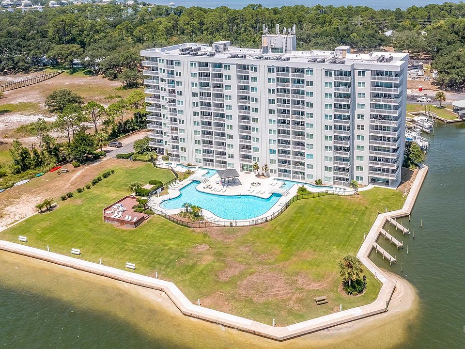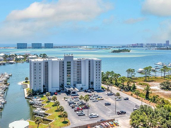 LOCATION, LOCATION, LOCATION! This 2/2 condo overlooks Terry Cove and has a view second to none in Orange Beach from the 5th Floor. Must SEE! This beautiful complex recently completed a major renovation (Spring 2023) with new windows, sliding doors, railings, exterior paint, and pool resurfacing. The resort style pool and green space also make this a unique and special property. This unit has been beautifully updated and is turn key! Freshly painted, LVP flooring, stainless steel appliances, new HVAC, plus a built in bar and spacious balcony for relaxing. Sold furnished. Marina slips are licensed to the owners for a reasonable yearly fee. Bring your boat, golf cart, kayak or bike and become part of the sought after Bay Back community. Upper lot is for boat trailer parking and golf cart charging station on property as well. The property will be gated and fully fenced again soon. Current assessment due to be paid in full by seller upon closing.