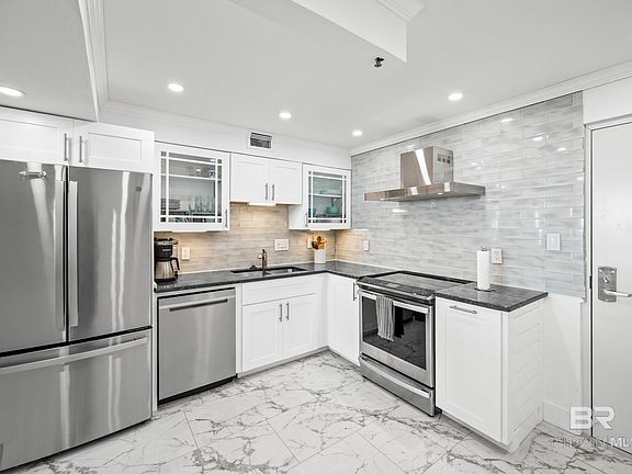 Discover modern luxury and breathtaking water views in this fully renovated Back Bay condo. Designed for style and functionality, this one-of-a-kind residence offers a seamless blend of contemporary design and high-end features, making it the perfect coastal retreat. The chef’s kitchen is a true showstopper, complete with custom cabinetry, stainless steel appliances including an induction stove, a custom island/bar, tile backsplash, self-dimming lights, granite countertops, and plenty of storage. Perfect for cooking or entertaining, this kitchen redefines luxury living. The open floorplan effortlessly connects the living and dining areas, featuring a built-in china cabinet and dry bar, ideal for hosting guests. Modern touches such as shiplap accents, recessed lighting, and a sophisticated color palette elevate this home to meet today’s design trends. Unwind in the spa-inspired bathrooms, showcasing onyx finishes—a walk-in shower in one and a soaking tub in the other. Custom vanities with granite countertops and touchscreen lighted mirrors bring both convenience and elegance to these luxurious spaces. Located in a prime waterfront condo community, this home offers million-dollar views at an incredible value. Final touches, including the kitchen backsplash, are expected to be completed soon, with additional photos to follow. Don’t miss your chance to own this fully renovated modern condo with stunning water views. Schedule your private showing today and enjoy the best of coastal condo living in Back Bay! Buyer to verify all information during due diligence.