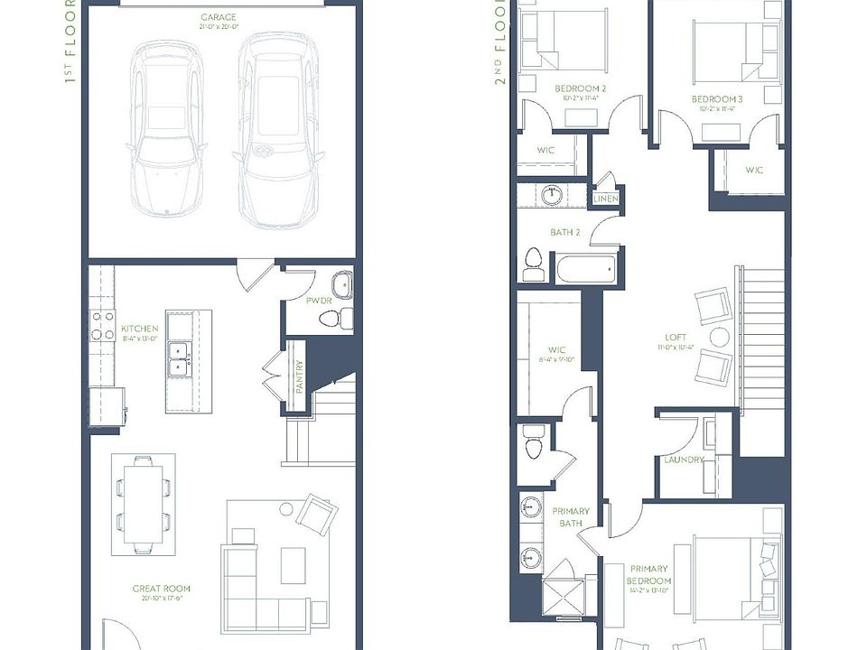 Our modern-inspired, contemporary two-story townhomes feature abundant two-tone bronze windows, sophisticated brick combinations, and ergonomically planned spaces for a seamless blend of indoor and outdoor living. This community showcases garage Front Entry (FE) homes with a private backyard and garage Rear Entry (RE) homes with a front courtyard.