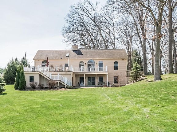 Exceptional lakefront home on beautiful Lake of the Woods. This custom brick ranch sits slightly back on a 2.24 acre lot surrounded by a beautifully landscaped yard with mature trees and flower beds. When entering the home, you will notice the openness of the main area with the 18 foot cathedral ceilings and impressive floor to ceiling brick fireplace. Five large skylights along with the beautiful picturesque windows brighten up the entire main level of the home. Newly barn wood tiled floors throughout the main area. The main floor features 4 bedrooms and 2 full bathrooms. Newly updated kitchen to include a large commercial range/ oven great for entertaining. Catch a great view of the lake out of your kitchen window. Custom 42'' wood cabinets, granite countertops, tiled backsplash, LED